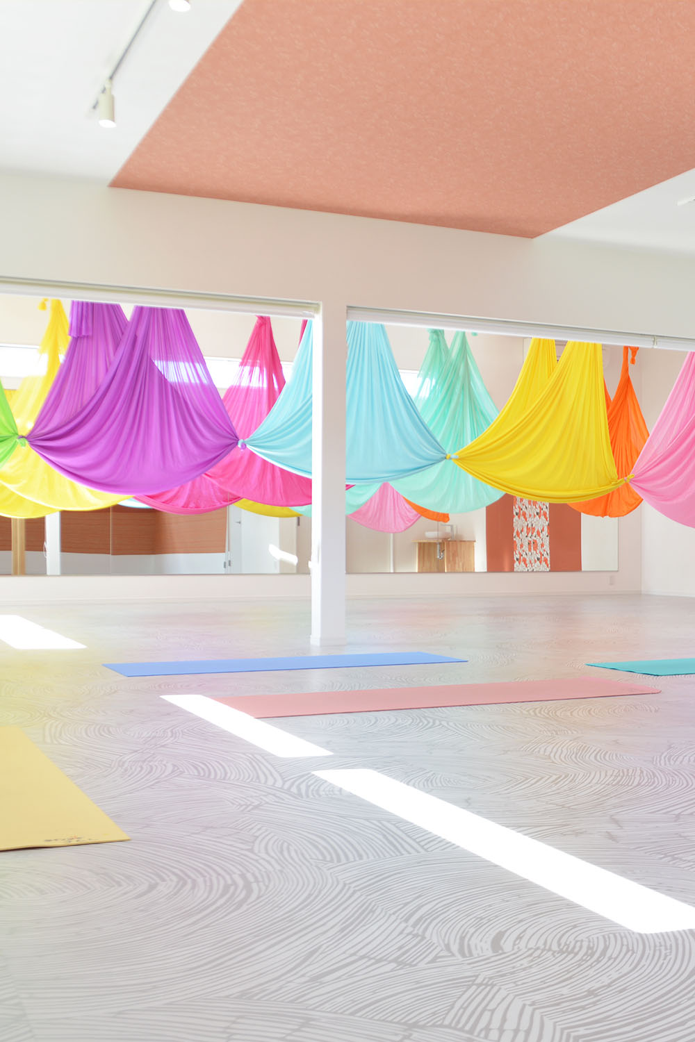 皆様それぞれの身体の状態や生活の状態に合わせて気軽にお好みのレッスンを選んで頂けるようにFlowing yoga(空中ヨガ)とyoga(マット)をご用意しました。