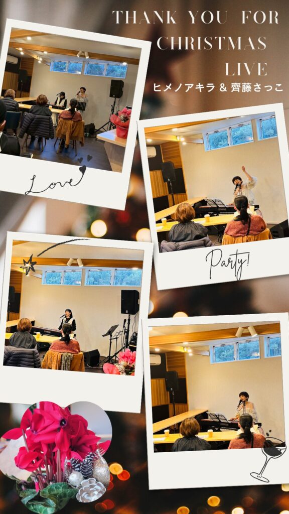 ヒメノアキラさん&齊藤さっこさん クリスマスライヴありがとうございました♪ 2025年12月21日 最終更新日時 : 2025年12月23日 reprism 2025年12月21日にヒメノアキラさん&齊藤さっこさんによるクリスマスライヴを開催しました♬ カフェスペースをご利用いただいて初めての音楽イベントでした! ヒメノさんも齊藤さんも歌詞が胸に沁みてお二人のお人柄が歌を通して伝わるんですね♪ たくさんのファンの方が来られて賑やかで素敵でした♡ イベントの会場に使っていただけて光栄でした! ありがとうございました! \ 最新情報をチェック /