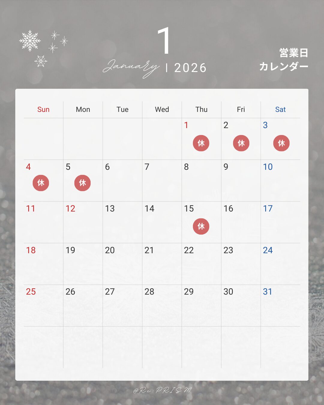 2026年1月 営業日