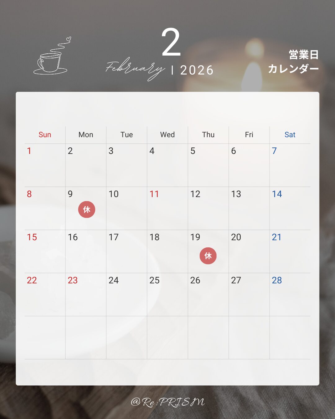 2026年2月 営業日のおしらせ