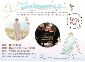 12月21日(日)ヒメノアキラさん・齊藤さっこさんによるピアノ弾き語りクリスマスライヴを開催します! 一緒に素敵な時間を過ごしてみませんか? 皆様のお越しをお待ちしております♪