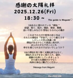 2025年12月26日(金) 感謝の太陽礼拝新着!!