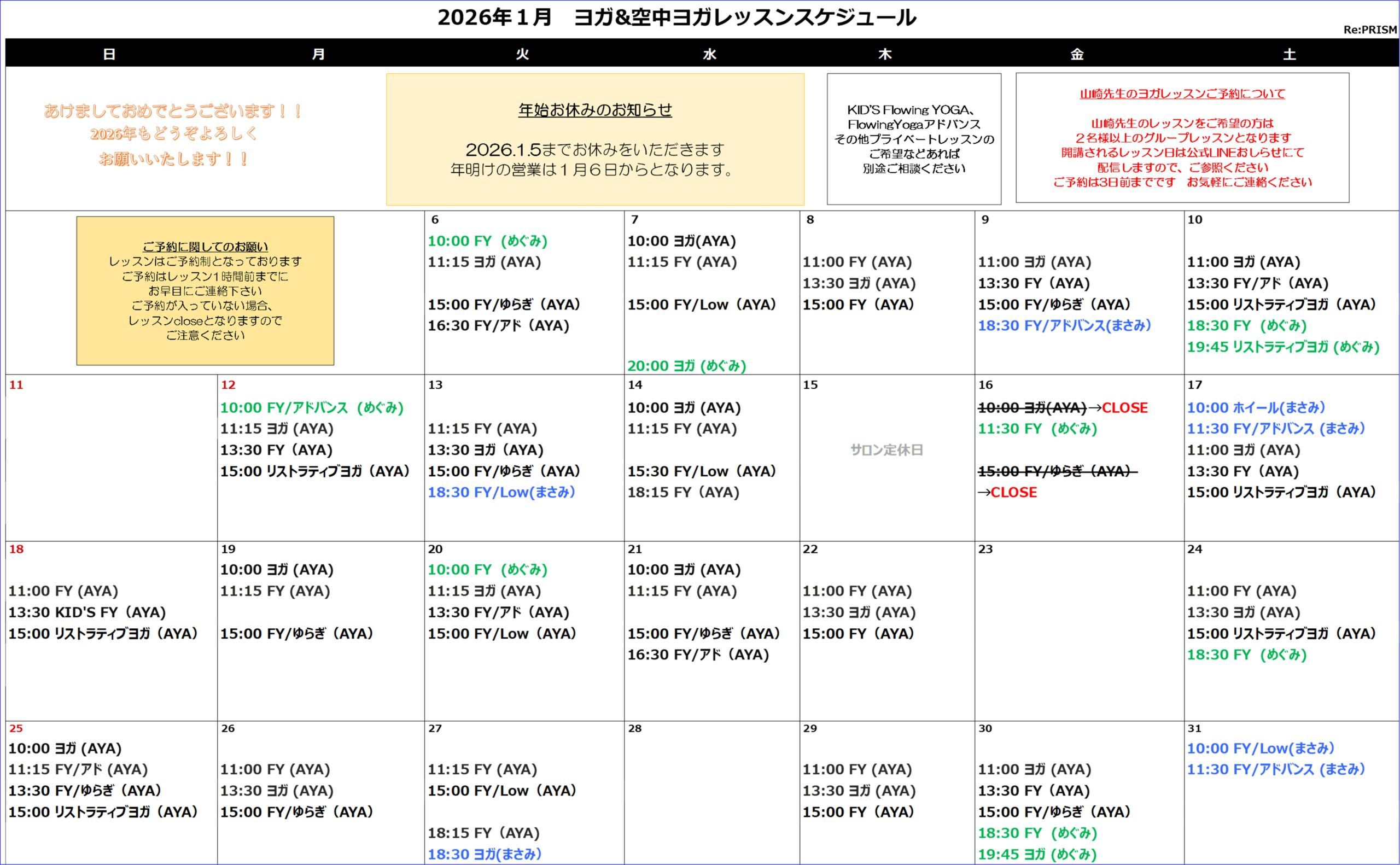 | Flowing yoga(空中ヨガ・50分) | 2,700円 | 2,500円 | 7,000円 | 11,000円 |